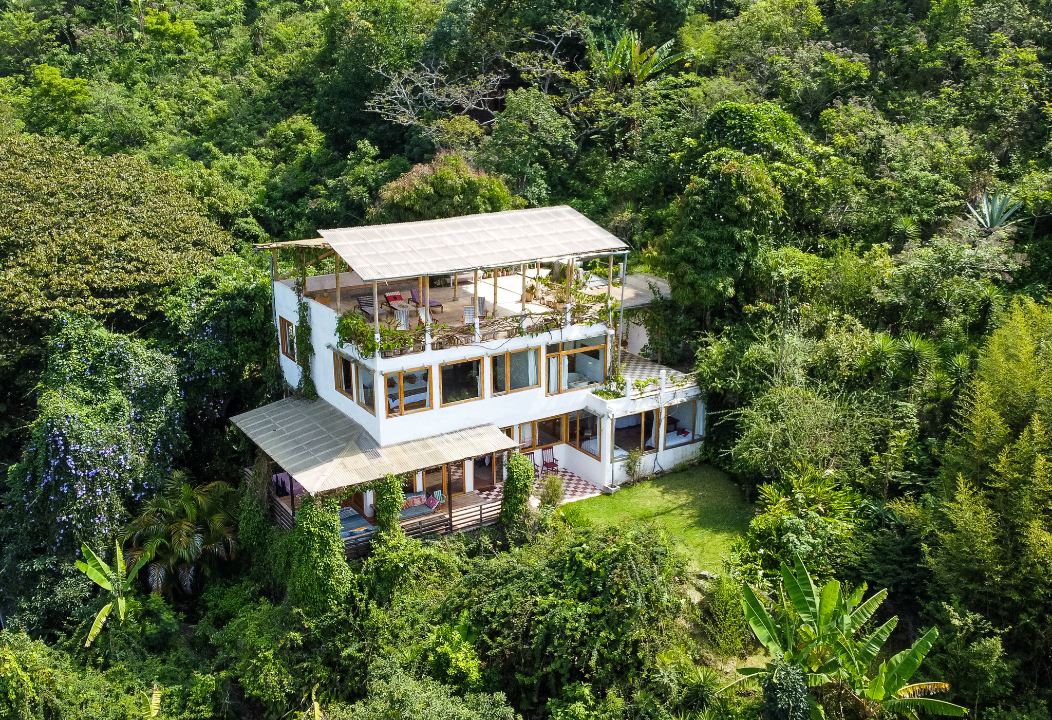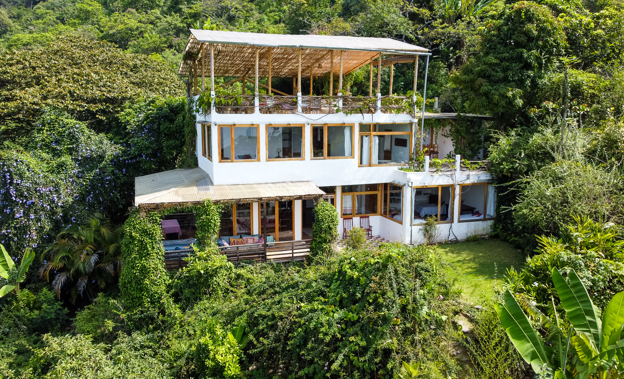 Welcome to The Seed, a one of a kind, luxury eco-estate. This is a rare chance to step into a readymade sustainable lifestyle and business on Lake Atitlan. A 10,000m2 estate in the vibrant community of Tzununá, Guatemala, The Seed has been a labour of love; designed, built and planted by The Moth. Among verdant grounds and mature edible and medicinal gardens, you will find a spectacular main villa, two cottages, a rooftop yoga shala, a traditional Mayan sauna, natural plunge pool and a staff room – all fully functioning as a family home and holiday rental, with a personally trained team of local cooks, gardeners and housekeepers. Its creators are now looking to pass The Seed and all its gifts to new owners.